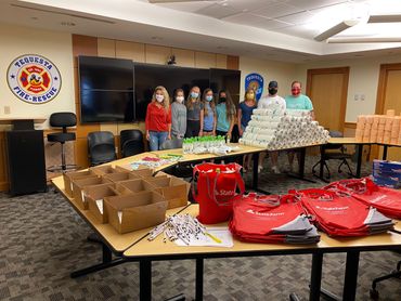 Over 2000 bags full of toilet paper, paper towels, soap, vinyl gloves, and hand sanitizer were delivered to the front door of Village of Tequesta residents.